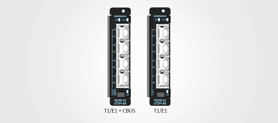 - Hasta 8 servicios T1E1 masivos o hasta 4 puertos CBUS (a través de la futura tarjeta 90308-02)